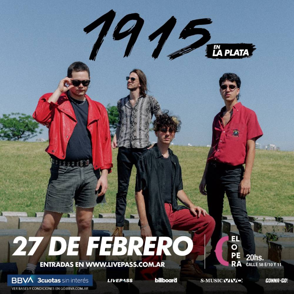 Tras su vuelta a los shows en vivo, con entradas agotadas en el CC Konex y en el Anfiteatro del Parque Centenario, 1915 se presenta el próximo sábado 27 de febrero a las 20hs en la ciudad de La Plata, en vivo y con público para alegrar el verano.