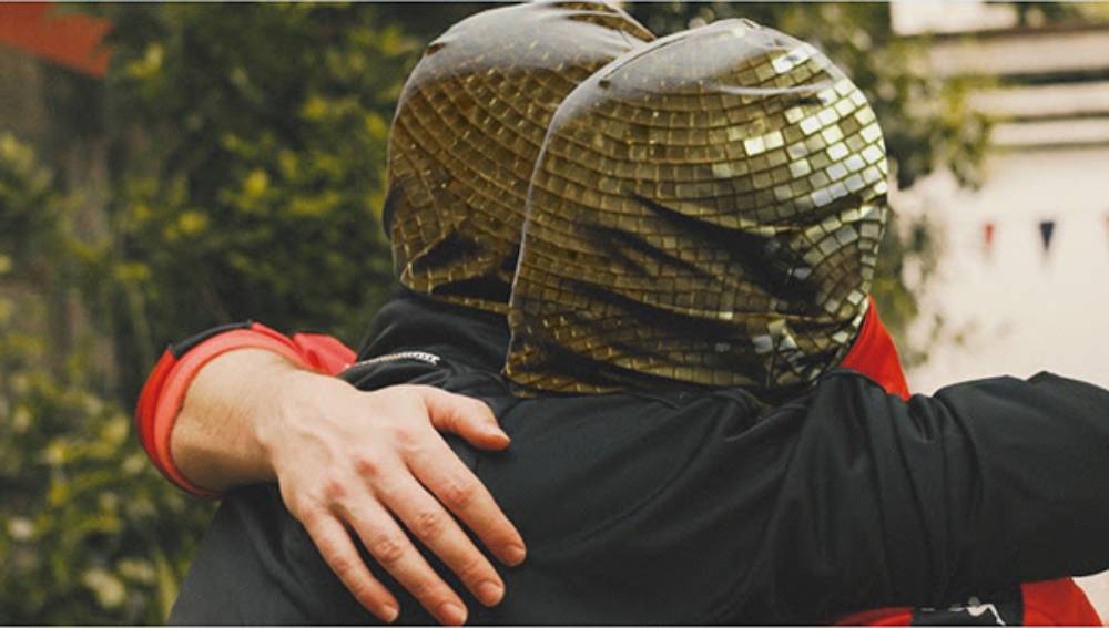 Tras estar recluidos durante un año, los ‘bicis3000’ salen a recorrer su barrio con su máscara de bola de boliche, se abrazan infinitamente y se juntan en su casa rosada para hacer lo que más les gusta, crear.