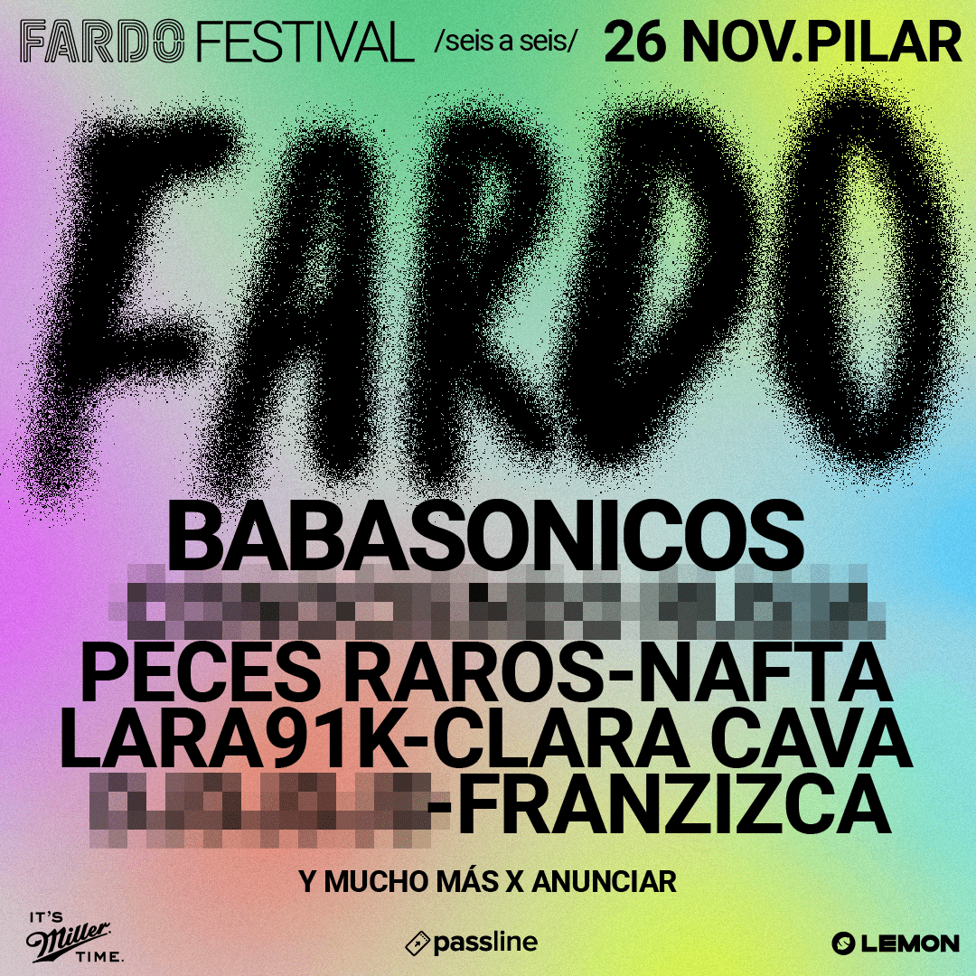 Babasonicos, Peces Raros, Nafta, Lara 91k, Clara Cava Y Franzizca DJ son los primeros artistas que anuncia Fardo para este 26 de noviembre, donde aún quedan más y grandes artistas por develar.