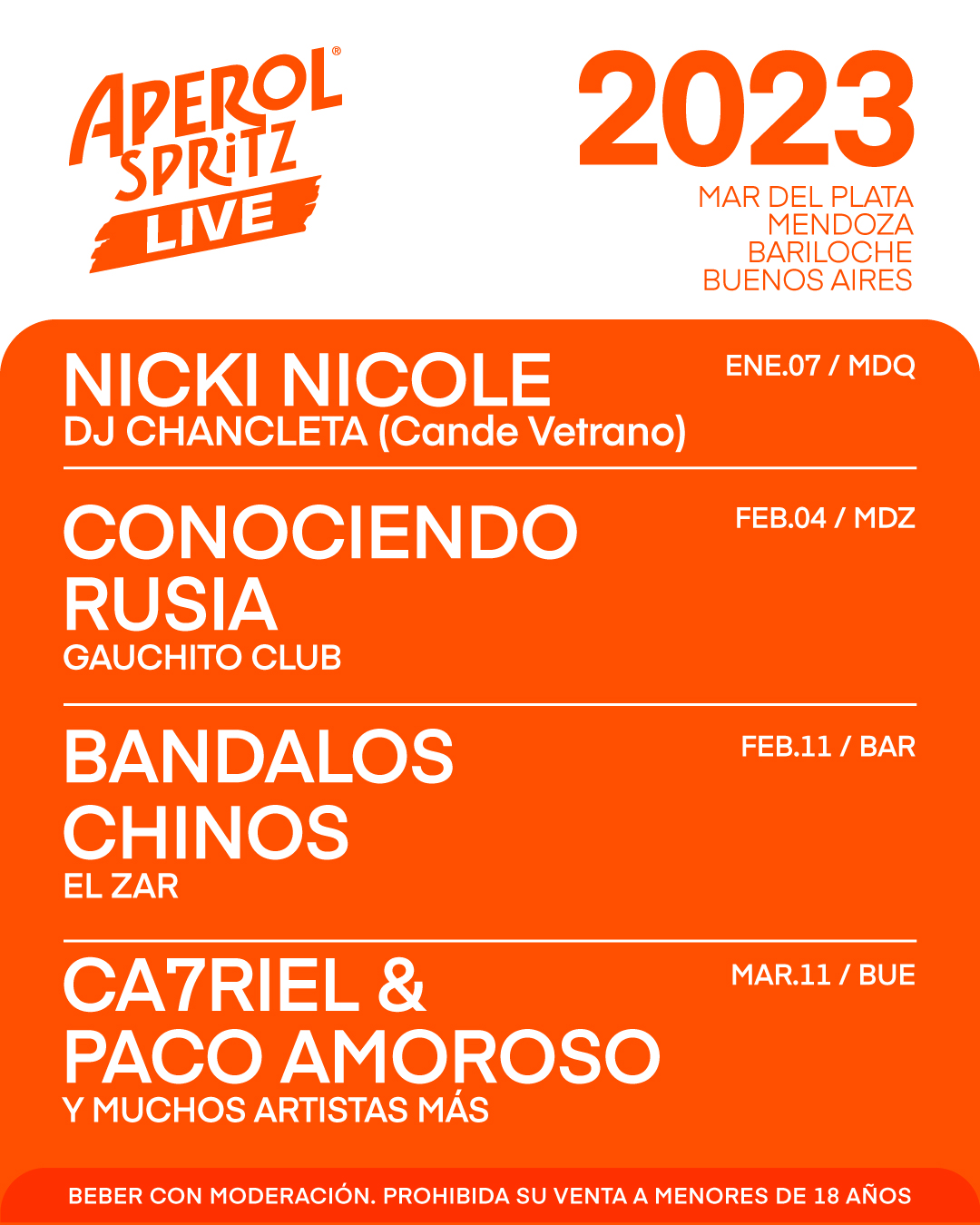 La entrada es gratuita -cupos limitados- para mayores de 18 años, con previa registración en la web de la marca (a partir del 2 de enero en: https://aperolspritz.com.ar/).