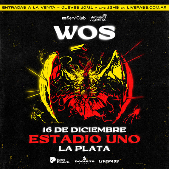 El show en Estudiantes de La Plata cerrará un año consagratorio para WOS. Allí, estará acompañado por su banda, formada por Natasha Iurcovich (bajo), Facundo ‘Evlay’ Yalve (guitarra), Fran Azorai (teclados) y Tomás Sainz (batería), y se presentará con una propuesta artística, escenográfica y musical impactante.