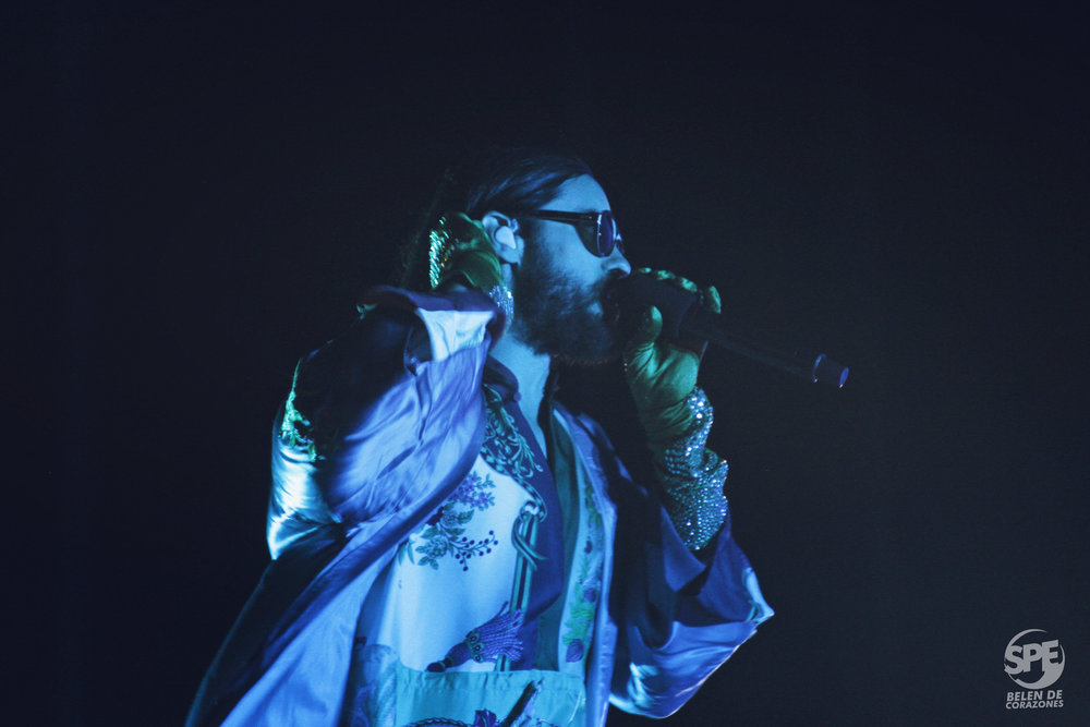 Una larga espera antecedió al apagado de luces, iniciando el show con un enlace entre ‘Monolith’ y ‘Up In The Air’, donde el pop y la EDM tomaron por asalto Buenos Aires y pusieron a todos a saltar alocadamente. Leto ingresó enfundado en una colorida túnica oriental de Gucci, anteojos oscuros y unos guantes dorados bien llamativos que no eclipsaron el hecho de que su voz se encuentra en un momento prodigioso.