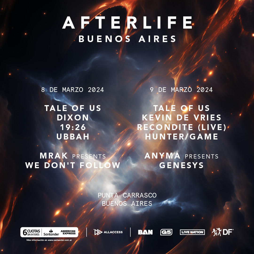 En una propuesta que promueve “un viaje hacia lo desconocido”, Afterlife regresa a Argentina el 8 y 9 de marzo de 2024 en Punta Carrasco, para compartir los nuevos sets de los artistas del sello y abrir las puertas hacia ese universo mágico creado por los talentosos Matteo y Carmine.