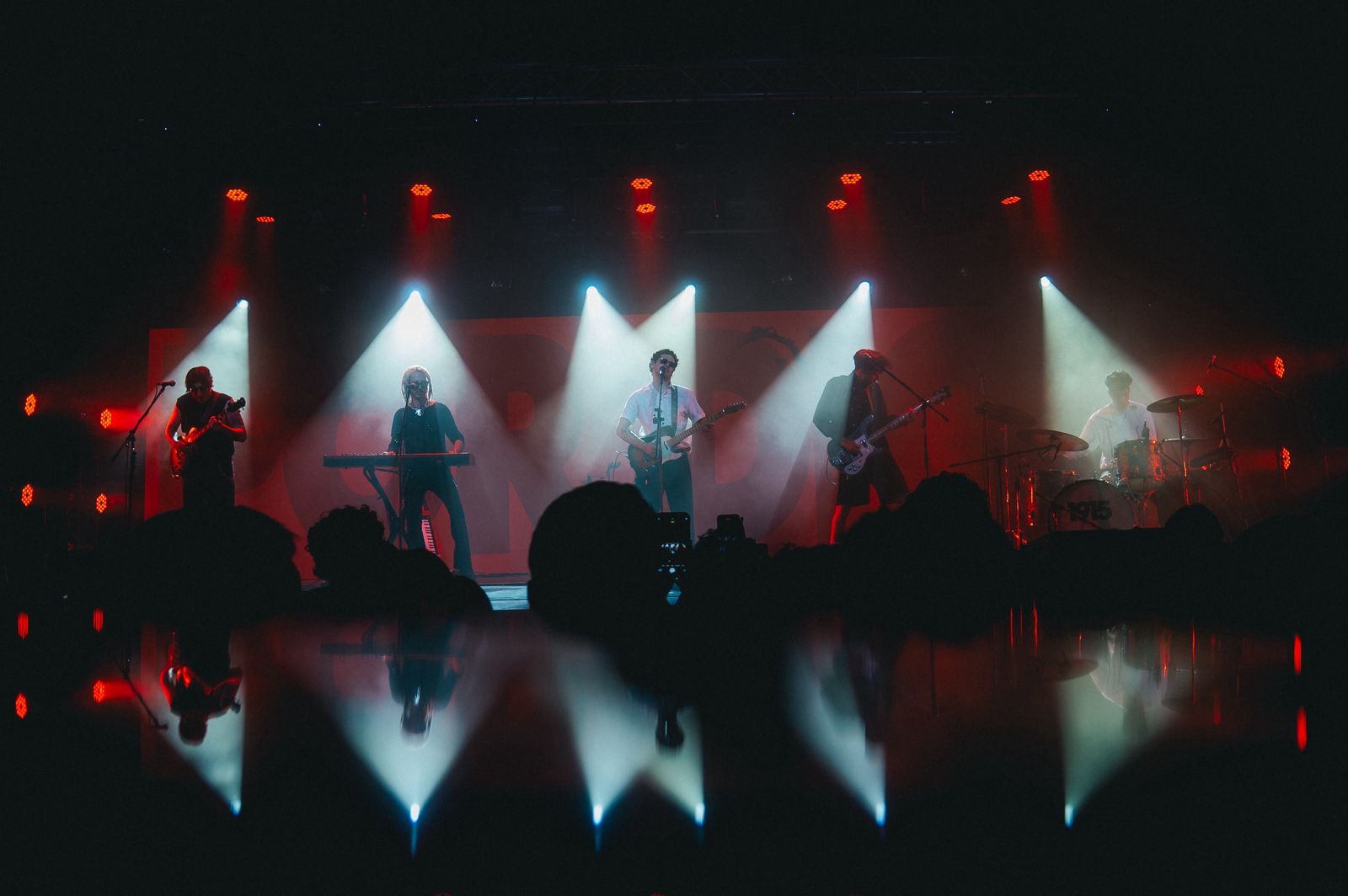 Ya con la sala colmada y las energías en sintonía gracias a la banda telonera, Camionero, los cinco integrantes de 1915 subieron al escenario para abrir el show con la canción inicial del disco, ‘Eco’. Eligieron una forma distinta de ocupar el espacio en el escenario: alineados en forma horizontal, sin jerarquías visuales, tocando codo a codo como si fueran un solo cuerpo. Esta decisión escénica potenció la idea de unidad, de banda que funciona de manera orgánica y se complementa al 100%.