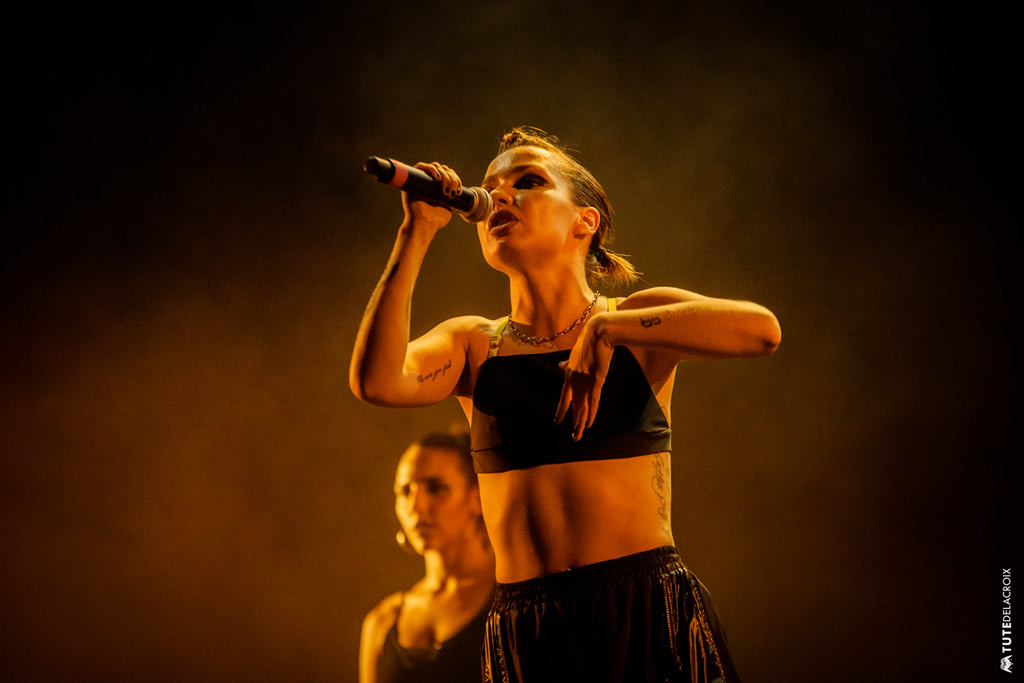 El explosivo estribillo de 'Astronomía' de Vicetone sonaba bajo las luces violetas para darle la bienvenida a Femigangsta, el proyecto liderado por Agnes Simon, que tiene acostumbrados a sus fans a sus cómicas salidas mientras entonaba por encima 'Pose' de Daddy Yankee. El tema elegido para el arranque fue 'Pajaritos' mientras bailaba con Violeta Rallis, que realizaba su performance al compás de la batería de Marta Fontana y los coros de Mai Segal.