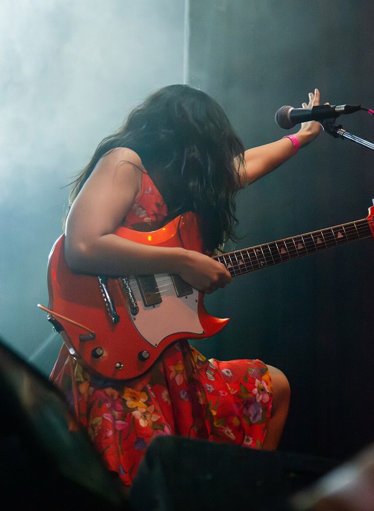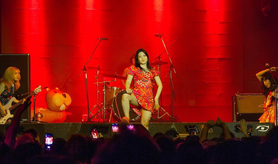 Las oriundas de Kyoto no dan respiro. Por un rato saltaban de canción en canción casi como los Ramones en It’s Alive (1979), pero sin siquiera la necesidad de un conteo de palillos. Mechando constantemente entre su primer y segundo LP, las pequeñas pausas eran con juegos dramáticos o buscando el silencio absoluto para lanzarse a la siguiente canción. Entre temas decían, en su poco español y casi como una docente: “Callate”. Una vez que el silencio era total, Yoyoyoshie empezaba a tocar con violencia su guitarra y el moshing comenzaba.