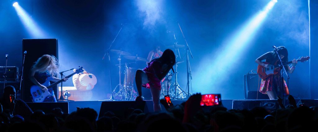 De manera muy apropiada, todo comenzó con Las Tussi, la banda actual más emblemática de aquel espíritu en Argentina. Se las notaba inspiradas y lograron acelerar a un público que esperaba impaciente por la llegada de la banda nipona. Interpretando canciones de su reciente El Álbum Rosa (2025), se nota una evolución en la banda que, a pesar de mantener su frenético punk directo, también empieza a coquetear con otras cosas. Desde el noise rock hasta algunas bajadas que eran imposibles de no acompañar con el movimiento de la nuca. Con el cierre, ya la ansiedad se palpitaba cada vez más. Pasaron los minutos y finalmente se abrió el telón. Detrás estaban cuatro chicas haciendo poses dramáticas, que en un abrir y cerrar de ojos empezaron a interpretar ‘Yakitori’. La avalancha fue inmediata y prácticamente nunca cesó.