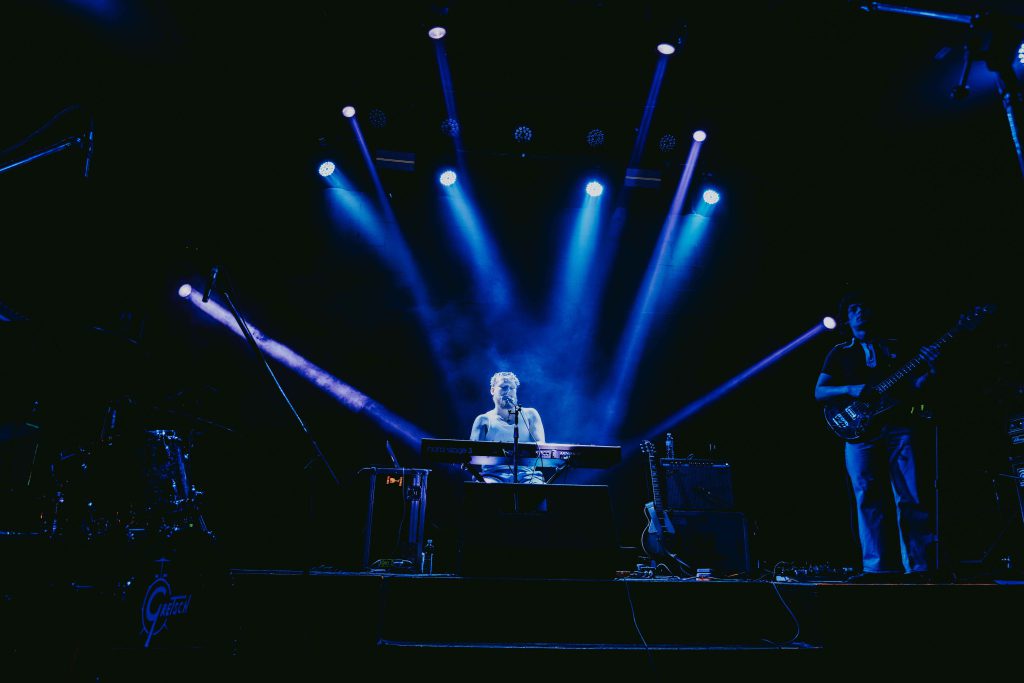 Sobre el escenario, cuatro músicos y un despliegue poco habitual: la batería al frente, George alternando entre teclados, guitarra y bajo, y un aire de improvisación elegante.