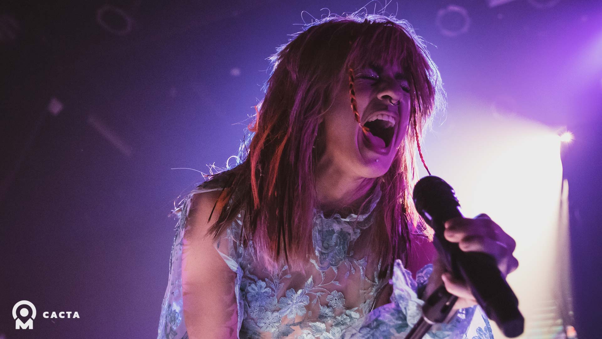 Volver a los orígenes puede ser una idea fantástica, sobre todo si uno de tus primeros trabajos solitas fue Sexo Con Modelos (2016). La tapa del disco (que también tuvo su spot en Niceto para sacarse fotos) fue recreada con cada uno de sus elementos en el escenario. El piso simulando el blanco del mantel, la flor amarilla a la derecha, el vaso volcado con la mancha esparcida a la izquierda y, en el centro de la escena, los fideos violetas. Justo ahí, cuando pensábamos que nada podía superar lo logrado por Marilina Bertoldi en su último Luna Park, nos brinda otra grata sorpresa.