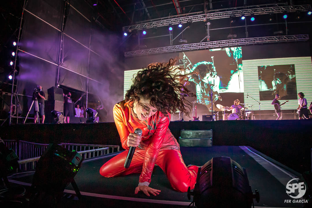 'Tito Volvé' llegaba con coros bien altos y una tipografía de cartel de neón que mostraba el estribillo para que nadie se lo perdiera, luego llegó 'Fumar de Día', otro de sus hits, terminando de golpe con enérgicos aplausos de los presentes. El momento más rockero y sacado del show llegaba con 'Y Deshacer' y 'Mdma' donde volvió a desparramarse en todo el escenario dejándolo todo y agregó: “Esperemos que pronto podamos hacer los pogos pertinentes, y que vuelvan a ponerse en tetas y todo eso que les gusta a ustedes”. Con un comienzo explosivo que nos toma por sorpresa, se hace presente el último tema de la noche 'Racat' con Rocío en bajo marcando el ritmo.
