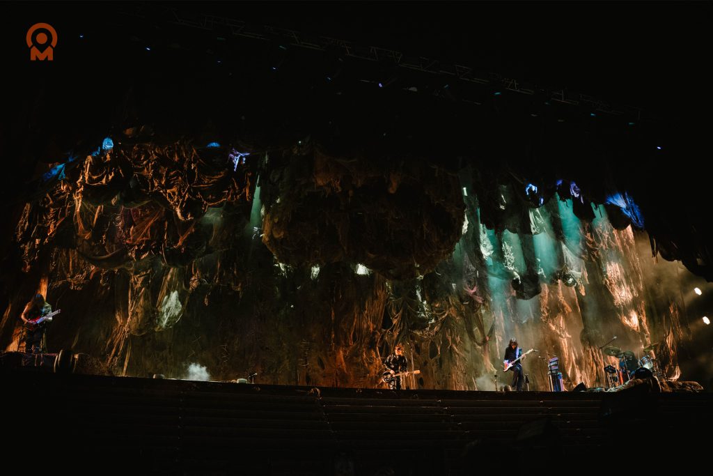 La puesta en escena fue uno de los puntos altos de la noche. El estadio y el escenario estuvieron ambientados como si el público estuviera dentro de un cuerpo. A carne viva. Ese concepto, tan presente en el universo de Por Cesárea (2024), se materializó con un enorme corazón latiendo en el centro del campo.