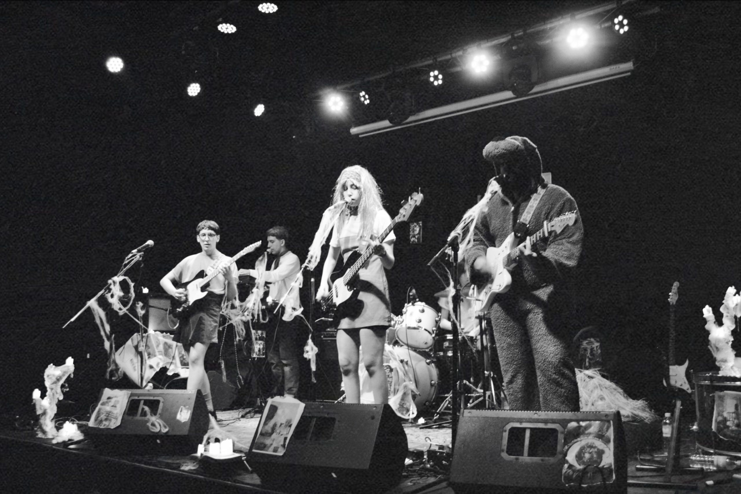 20:00 hs marcaba el reloj del teléfono y todos los presentes estaban alerta a que se abriera el dramático telón rojo que cubría el escenario. Contaban con escenografía característica del tema principal del evento, candelabros tétricos, calaveras, libros antiguos que te llevan inmediatamente a mansiones embrujadas y telas de araña. A los pocos minutos la banda conformada por un grupo de amigos Tomás Pelaez (guitarra, voz), Delfina Gel (bajo), Juan Viaggio (batería), Matías Vertula (guitarra) y Franco Moreno (teclado) se empiezan a divisar por las partes que no llegaba a cubrir el telón que inmediatamente se abre para dar comienzo al show. Vestidos en conjunto de la famosa pandilla que resuelve misterios Scooby Doo (1969) eligieron ‘El Ritmo’, track perteneciente a Ya No Estamos Solos, que pusieron a bailar y saltar al público a través de pulsaciones y sonidos.
