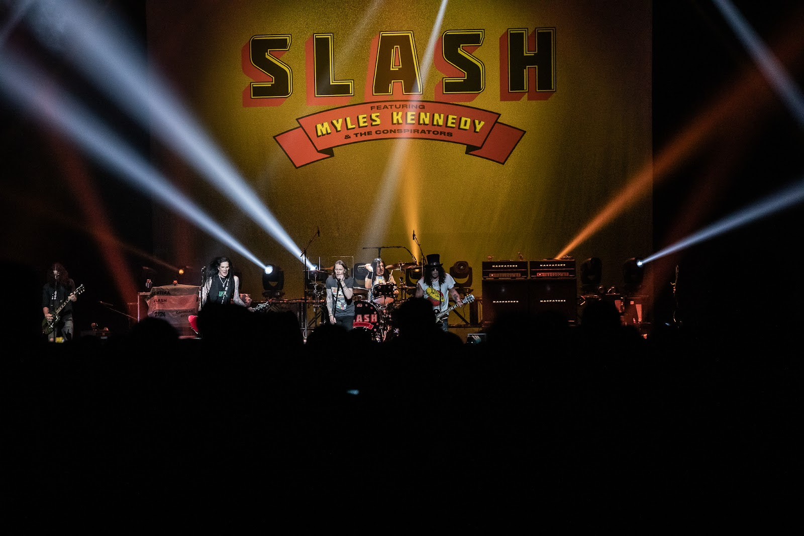 A las 21 hs el público comenzó a ovacionar a la banda al escuchar los primeros acordes de “The River is Rising” mientras salían al escenario los protagonistas de la noche: Slash, Myles Kennedy (voz principal), Brent Fitz (batería), Todd Kerns (bajo/voz) y Frank Sidoris (guitarra rítmica).