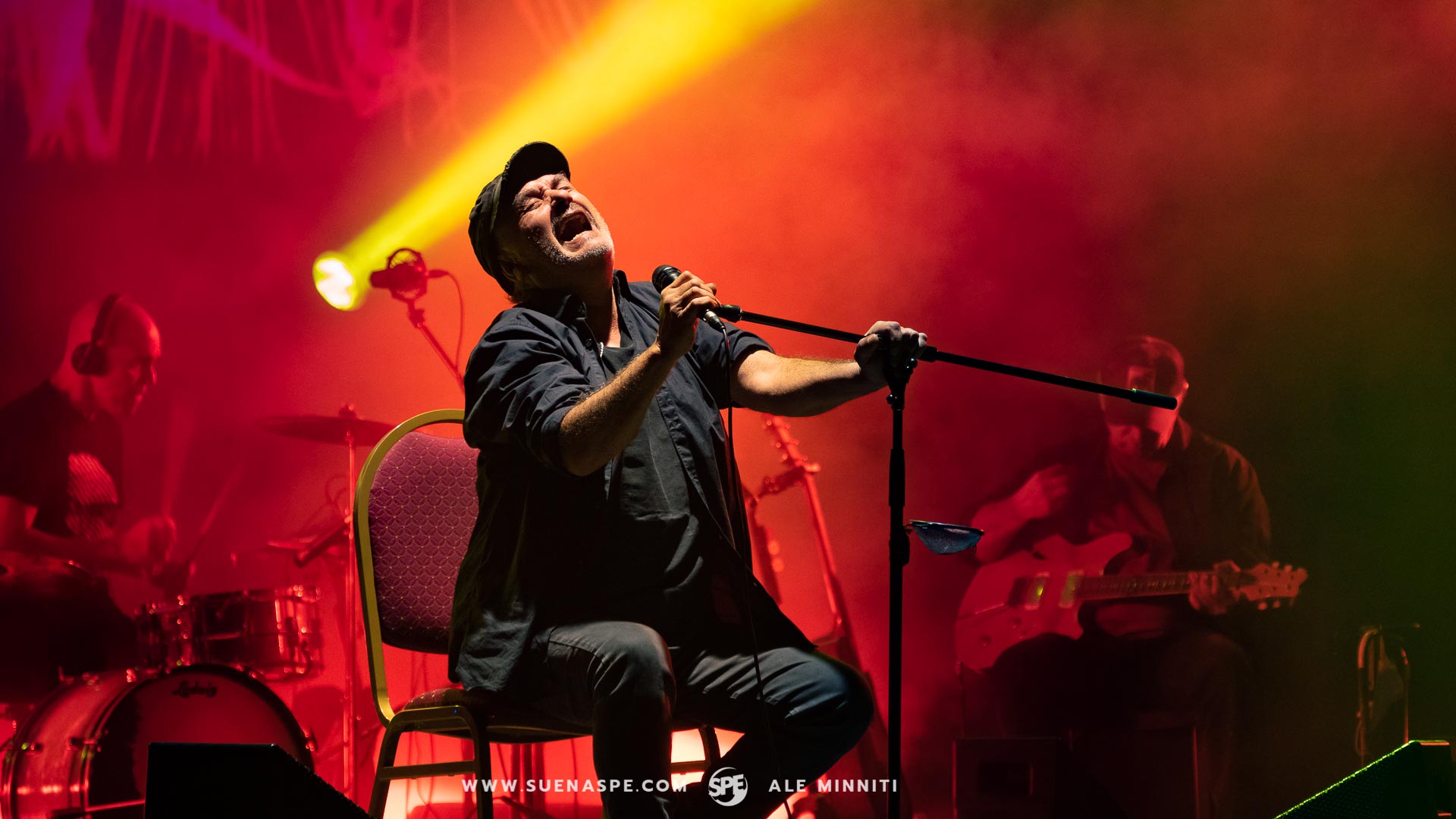 Las energías que circulaban empezaban a cambiar a medida que pasaba el concierto. Más gente se ponía de pie, lanzaban sus brazos por el aire y, aquellos sentados, acompañaban el ritmo de las canciones pisando el suelo en sintonía. Temblores, gritos y miles de emociones repercutían en los pechos de los concurrentes. Esta vuelta de tuerca empezó con ‘Que estés sonriendo’, después de que Germán estuviera sentado por más de una hora.