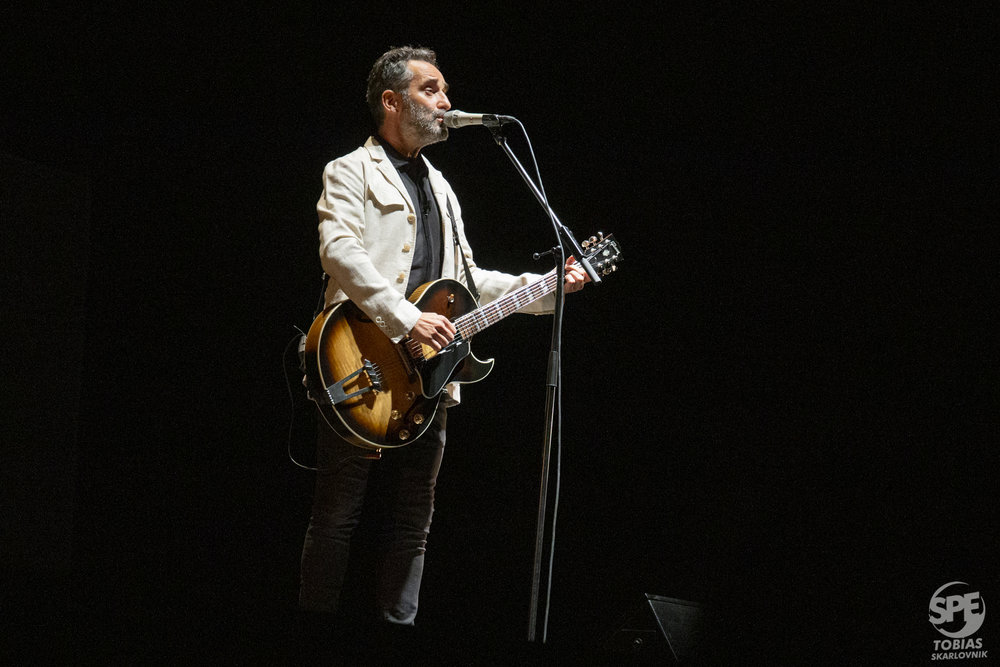 ‘Transporte’ fue el primer tema, el cual interpretó con una caja de fósforos como instrumento de percusión. Sin respiro siguió ‘Eco’, para luego darle la bienvenida al público: “Buenas noches Buenos Aires, esto es una cosa de locos. No sé cómo agradecer que, en un momento tan complicado como este, puedan estar acá”, expresaba con una voz nerviosa y una sonrisa en la cara. Manteniendo latente su séptimo álbum de estudio, Ecos (2004), ‘Deseo’ y ‘Guitarra y Vos’ resonaron en el ambiente como las cuerdas de la particular loopera del cantante.