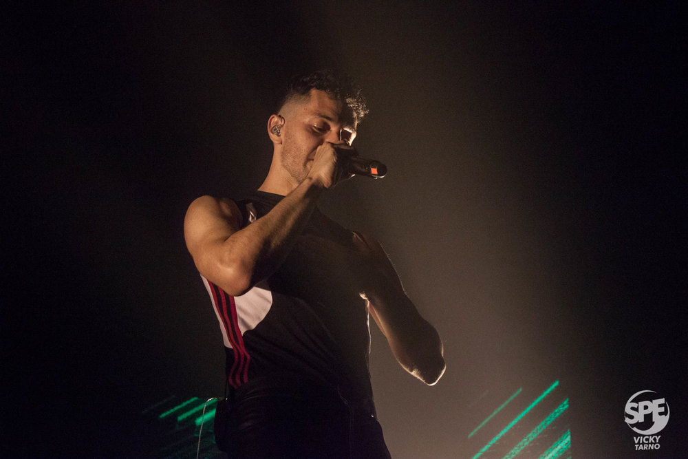 Los puntos altos siguieron y la dedicación del cantante era cada vez más notoria, su inmersión en lo que hacía lo privó de notar que alguien se desmayó en la parte trasera del local y estuvo unos buenos minutos en el piso hasta que llegó prevención al auxilio. Juan está en constante coqueteo con su público, en sus redes, en sus canciones, y el escenario no es la excepción. Para ‘With you’, esa declaración en clave trapera, ya tenía a todos hipnotizados y guiaba a todo el público en un salto de un lado al otro. En ‘Romeo y Violeta’ empezó a revolear rosas rojas, reafirmando el ya mencionado coqueteo con su público.