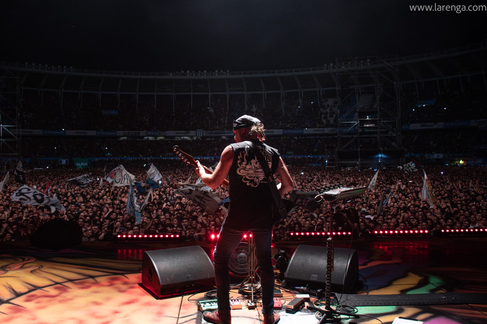A mitad de la noche del último show en Racing, el público estaba por presenciar un momento de suma relevancia para el rock Argentino en los últimos años: La Renga invitó a tocar a Divididos, sus “hermanos rockeros”, quienes en conjunto interpretaron  ‘Balada del diablo y la muerte’, ‘Ala Delta’ y ‘Hey hey my my’, coronando una velada a puro motor, alma y sangre.