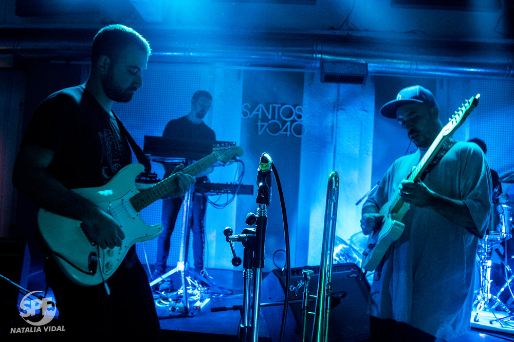 Santos 4040 tiene que ser uno de los venues más interesantes que hay. Funciona como bar, galería y sala de conciertos, todo repartido en espacios bien distribuidos y fluidos en los que el ambiente es el correcto: camaradería y unidad, todos estamos aquí para ver a la banda. Una que otra cara se hace familiar de las presentaciones recientes, miradas cómplices de ‘‘te vi en tal tocada’’. Todo esto también es resultado de Morbo y Mambo, de lo que genera en vivo y de lo que transmiten ellos como personas, se los ve comodísimos entre su público, saludando a más de un fan que ya reconocen o alistándose para tocar.