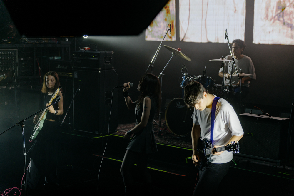 Y hay un interludio, momento que el sueño es pesadilla porque queremos un recital eterno. Vuelve lo visual pero con el único integrante que quedó arriba, Blas Bulacio y su guitarra que hacía eco en las paredes. Él protagonizaba el video. Estaba en nuestra casa y destapó un ¿mueble? No, me confundí: un grupo de sillas que se sostienen entre ellas y en el que él se sienta. Vuelve el grupo, muerte a la pesadilla. Después suena ‘Igual’ y de forma inmediata ‘Sueños por Debajo’.