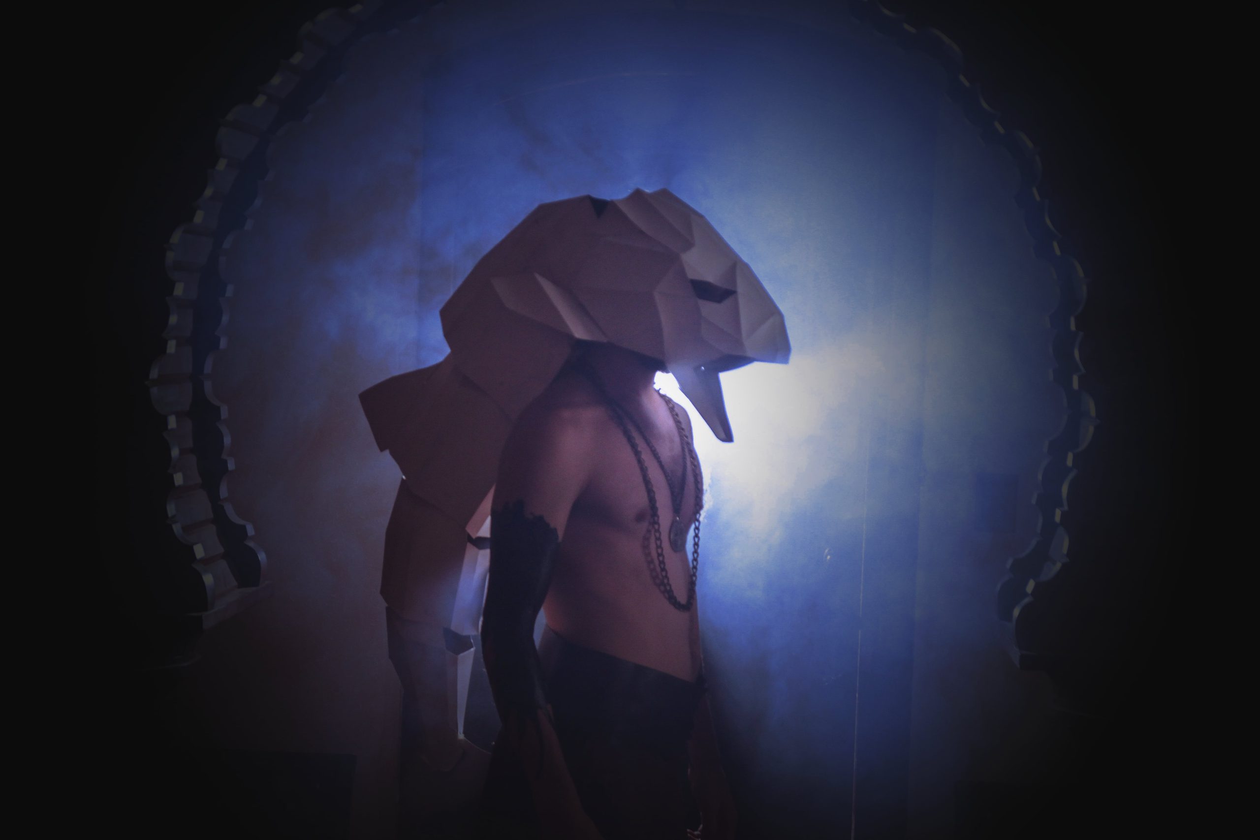 Ox en Mayo Alto: Creo que todo apareció en bloque, simultáneamente. Las máscaras representan un personaje: un zorro, un pez y un venado. Se habla de la guerra, de Oppenheimer, de profetas, Es un poco el interés por un proyecto conceptual, en términos generales y lavado de toda pedantería. Construimos la idea de un mundo ficcional, que por supuesto está emparentado con el mundo en el que vivimos, es un gesto cultural no estandarizado, opuesto al culto a la personalidad. No creemos en la idea de que tiene que haber un frontman y la obligación de escribir letras en primera persona del singular. Por eso escribimos en tercera persona, o usando comillas citando a los personajes.