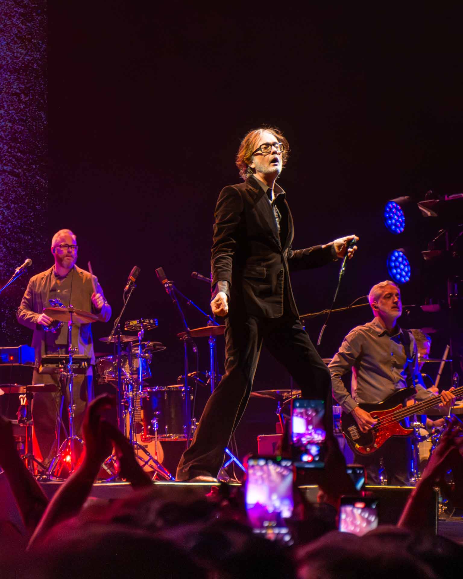 Como era de esperarse, el clímax de la noche fue el himno de la clase trabajadora ‘Common People’, en el cierre del primer encore. Un vocoder, el teclado de la reina absoluta Candida Doyle y la batería de Nick Banks elevaron a los presentes a un estado de euforia total. Abrazos, rondas de pogo, salpicaduras de agua (por supuesto, cerveza también), y la alegría total inundó la arena. Jarvis pasea por todo el escenario, se sube a los amplis, salta: nada que envidiarle a su versión treintañera que interpretó la canción por primera vez.