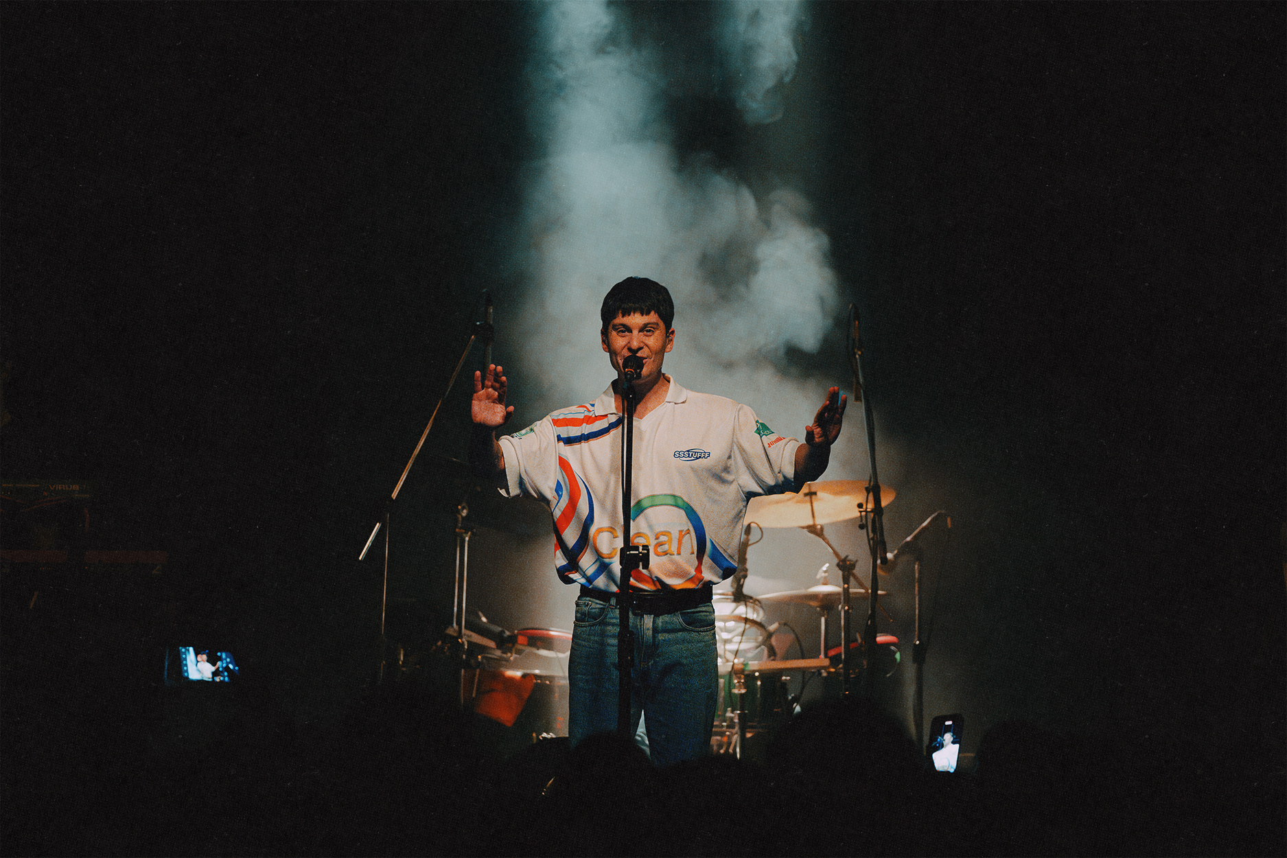 Santi y su banda llegaron al escenario y casi a oscuras interpretaron ‘LPM’, ‘Me lo buscaba’ y ‘Ella se burló de mí’, tres canciones que pusieron a todo el mundo a cantar. Luego de unos ajustes técnicos, el escenario se iluminó y tuvimos el primer de varios agradecimientos de la noche: “Gracias por haber venido, nos hace muy felices, lo que sigue es del primer disco. Canten fuerte, sin miedo, venimos a eso”. El track en cuestión, ‘Pasaporte’, es de esas contradicciones en las que la música es alegre pero prestar atención a la letra es desgarrador. Esta sensación se repetiría en ‘Mi Costado Fallado’: es una experiencia bella y lacrimógena en iguales cantidades.
