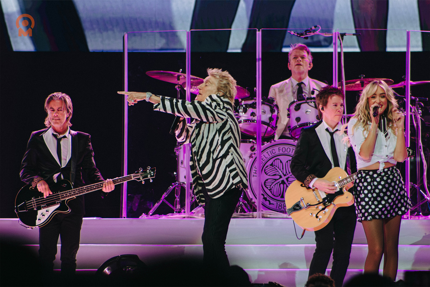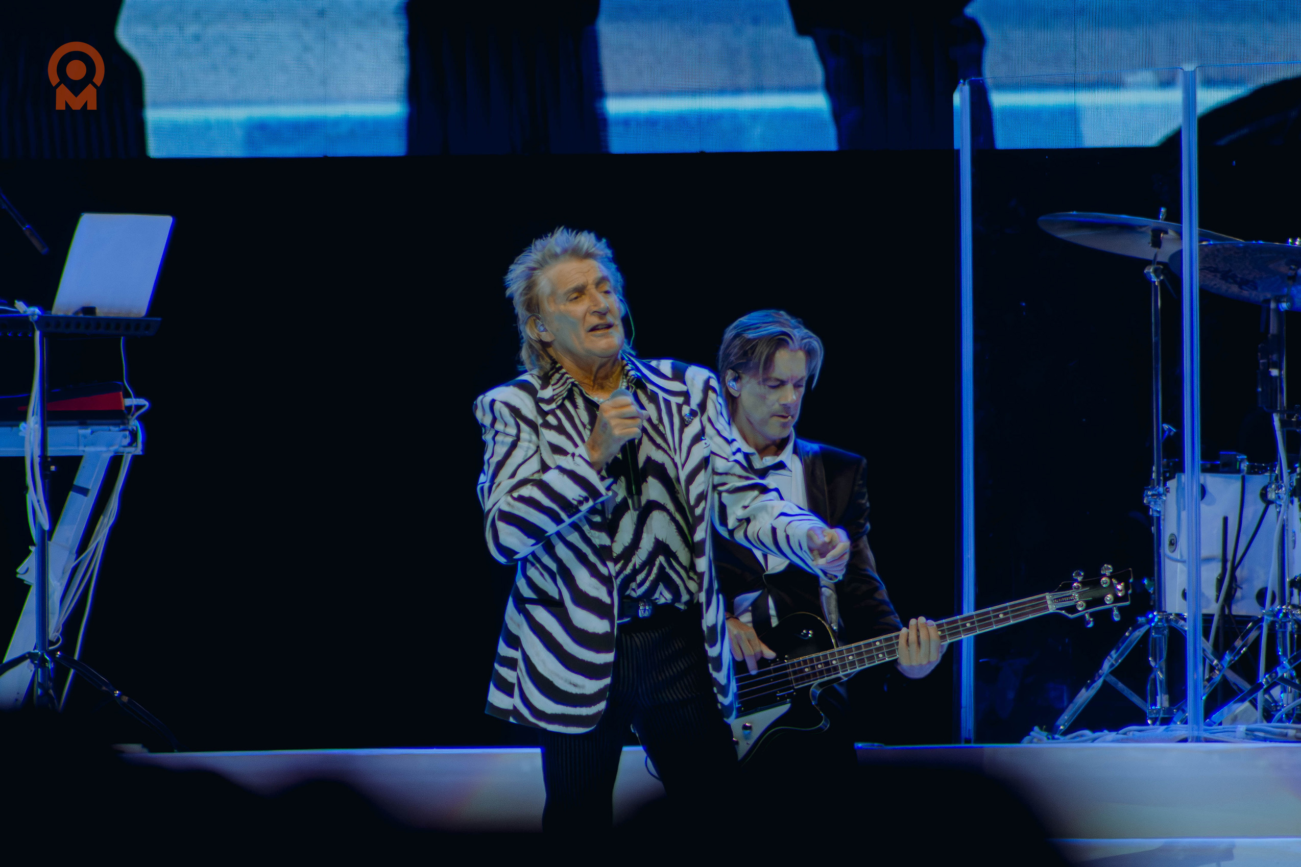 Sir Rod Stewart se presentó en un Movistar Arena sold out en tres noches consecutivas. Él es un artista que parece no cansarse, pese a la edad, y sus canciones dejan los corazones llenos de una alegría que trasciende el tiempo. No hay que olvidarse que Rod Stewart tiene 80 años, pero eso no lo detiene: cambió cuatro veces de vestuario, bailó, revoleó el micrófono, se movió por todo el escenario, pateó pelotas…