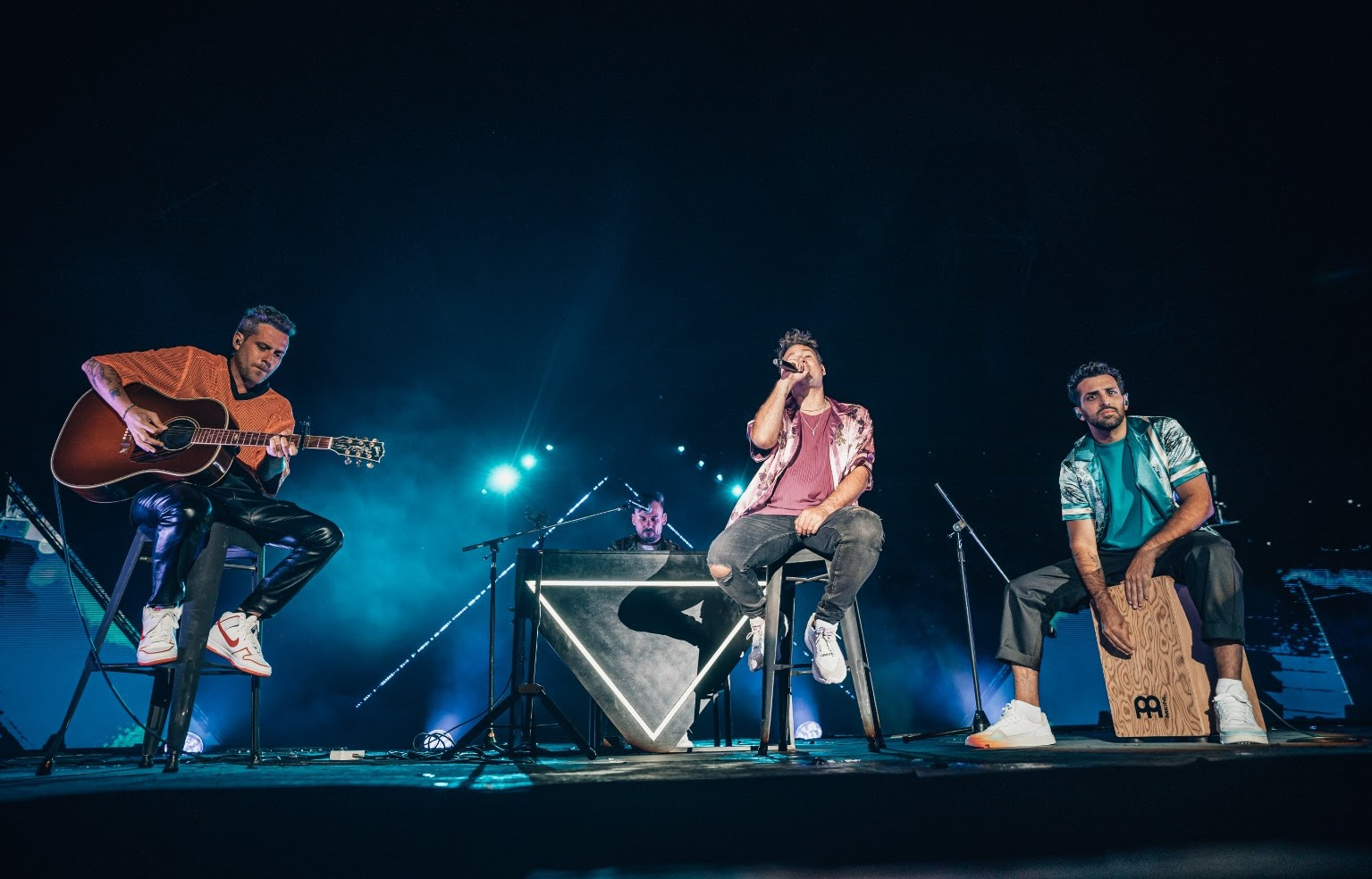 Ante un público feliz y emocionado, la banda comenzó su show a las 21:30hs con canciones como “Hola mi vida”, “Beautiful”, “Loca”, “Arruinarse”, e hicieron delirar al “piberio bionico” que no paró de cantar y bailar. El set acústico tuvo su momento donde se rememoró al disco “Hola Mundo” con temas como “La otra manera” y “La manera que eligió para matarme”.