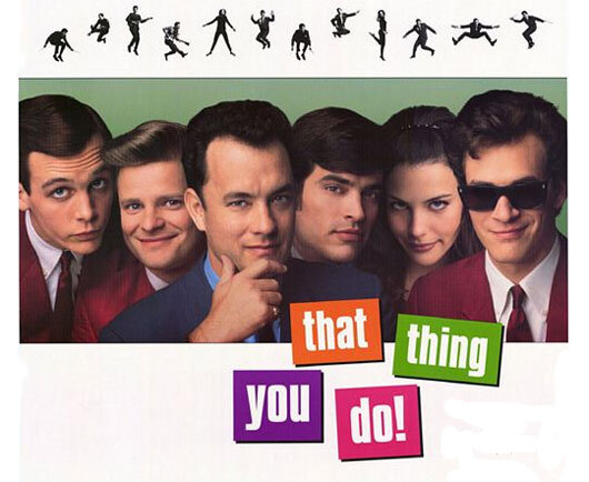 That Thing You Do! (1996) sigue a Guy Patterson (Tom Everett Scott), un joven de Pennsylvania que trabaja de día en la tienda de electrodomésticos de su padre, pero de noche le da duro a la batería. Su oportunidad de brillar llega cuando el baterista de la banda local The Wonders se rompe el brazo y Patterson se une a ellos para tocar en un concurso de talentos. El público queda fascinado cuando él cambia el tempo original de la canción elegida para la presentación, lo que enfada al cantante (quien compuso la «balada» en cuestión), pero les asegura la victoria con lo que luego se convertiría en un éxito.