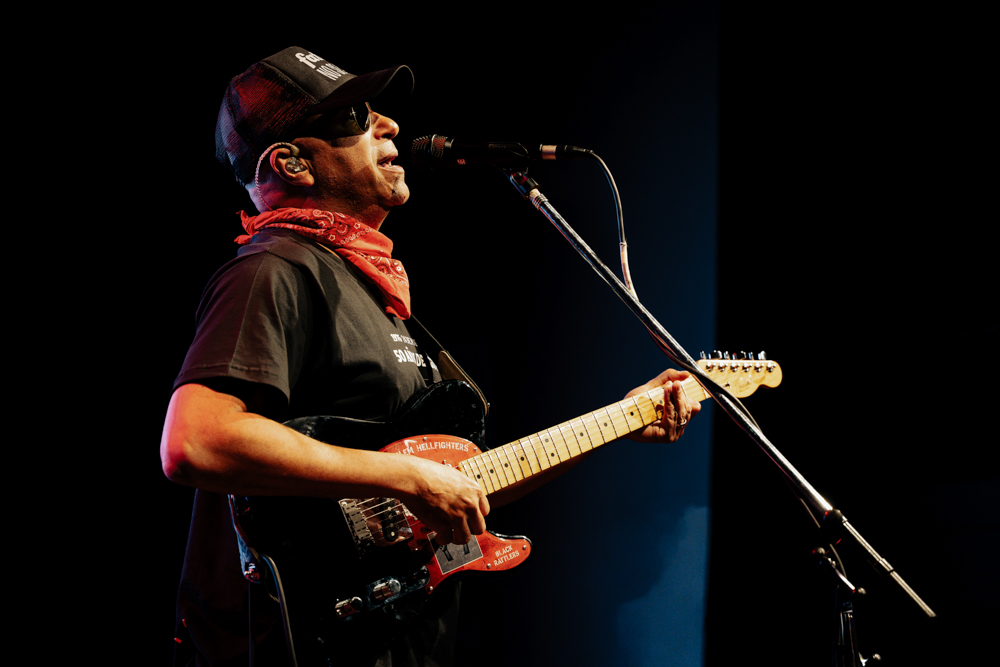 Ir a un concierto de Tom Morello es como ir a ver un show de magia: un riff pesado se transforma rápidamente en efectos especiales de videojuego y sonidos metálicos extraterrestres, que jamás te imaginarías que pudiesen salir de una guitarra. Todo gracias a los pedales, al instrumento, y por supuesto, a su talento. Un despliegue de esta magia se dio en ‘Secretariat’, un homenaje a Eddie Van Halen, otro virtuoso de las seis cuerdas. Pero no fue la única leyenda recordada de la noche.