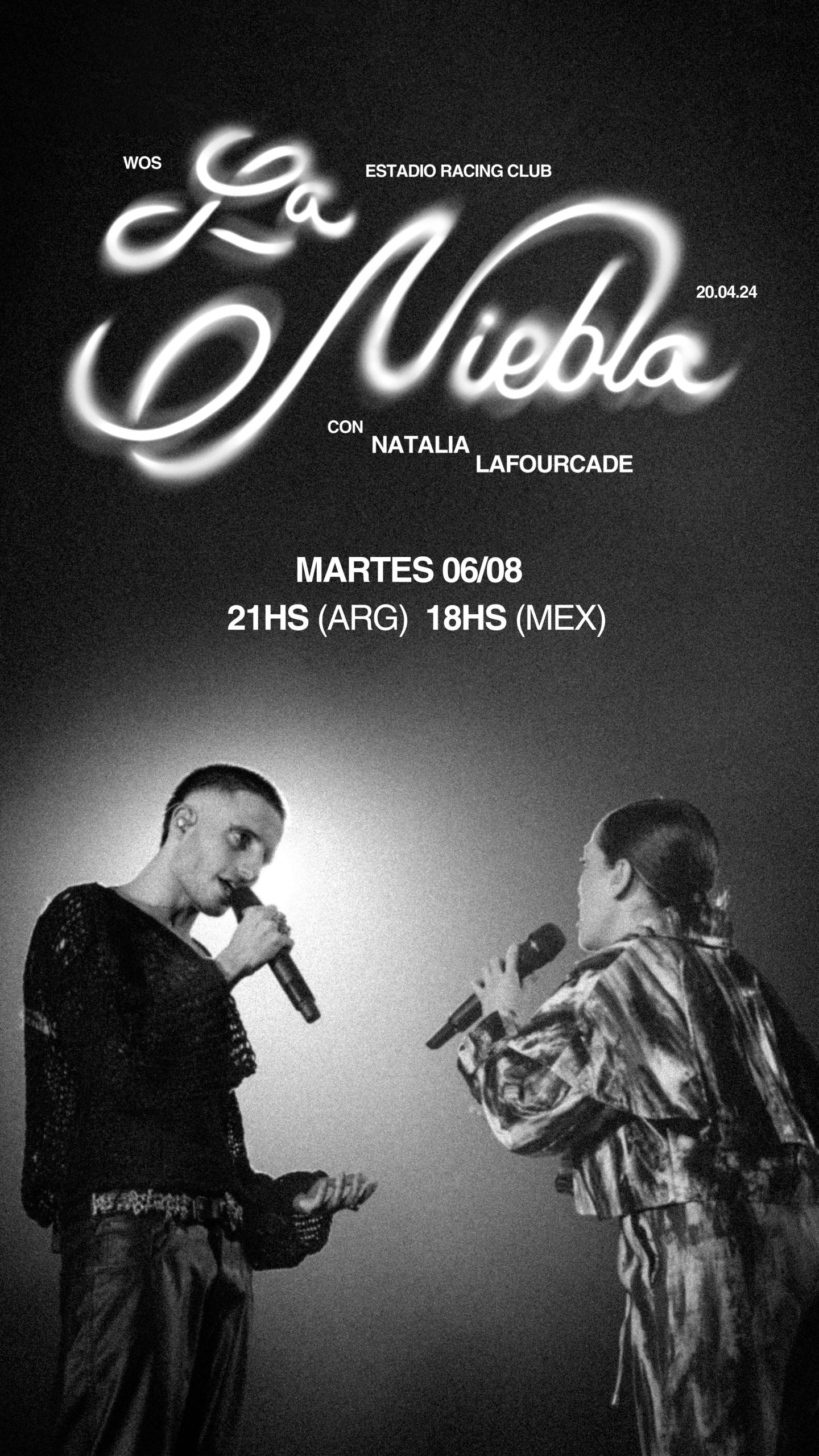 Este martes 6 de agosto a las 21 horas de Argentina se lanzó en el canal de YouTube oficial de WOS el video de LA NIEBLA en vivo en Racing Club. El registro capta uno de los momentos más íntimos del show, en el que el músico argentino invitó a su colega mexicana al escenario para interpretar este tema ante la emoción de 40 mil personas, logrando una intimidad única sobre el escenario. “¡Viva la música, viva WOS!” dice Natalia al despedirse.